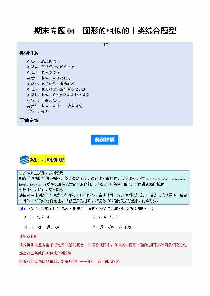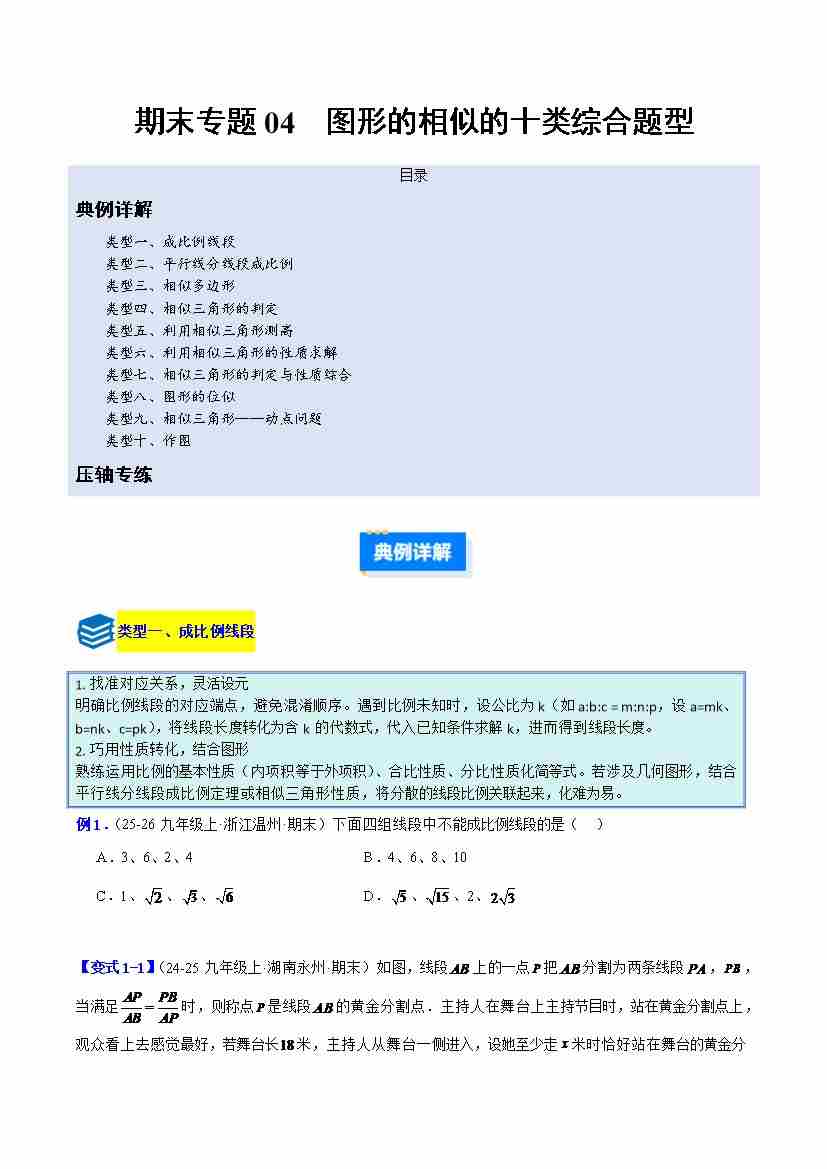 期末专题04 图形的相似的十类综合题型(压轴题专项训练)(原卷版)