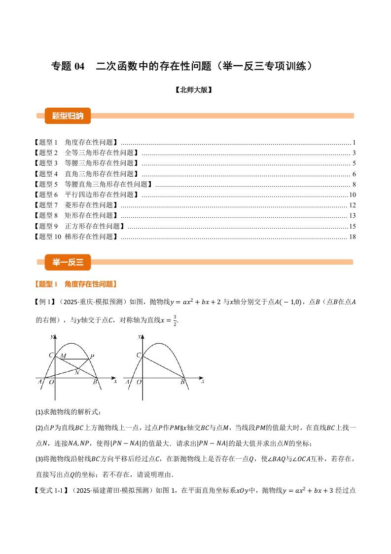 专题04 二次函数中的存在性问题(举一反三专项训练)(原卷版)