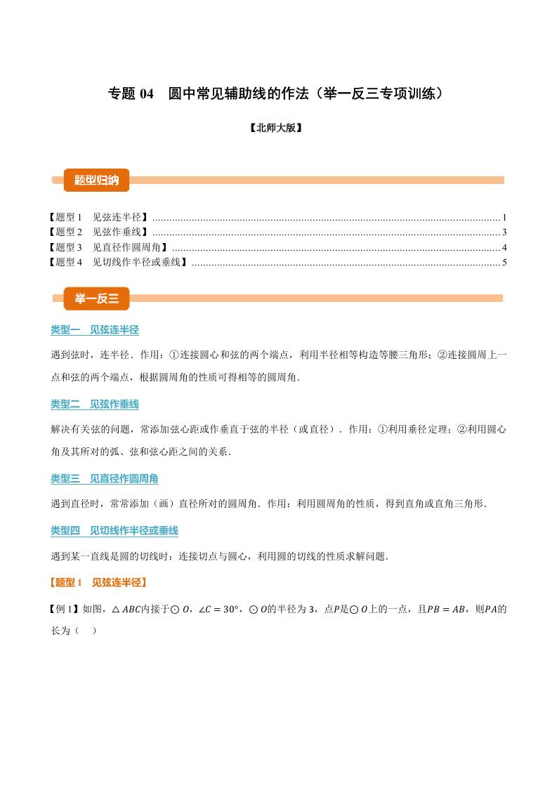 专题04 圆中常见辅助线的作法(举一反三专项训练)(原卷版)