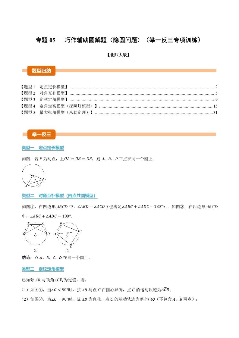 专题05 巧作辅助圆解题(隐圆问题)(举一反三专项训练)(原卷版)
