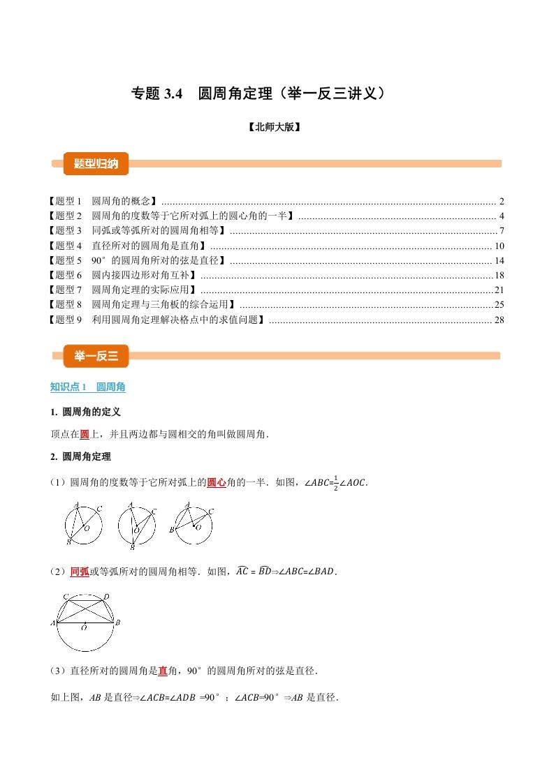 专题3.4 圆周角定理(举一反三讲义)(解析版)