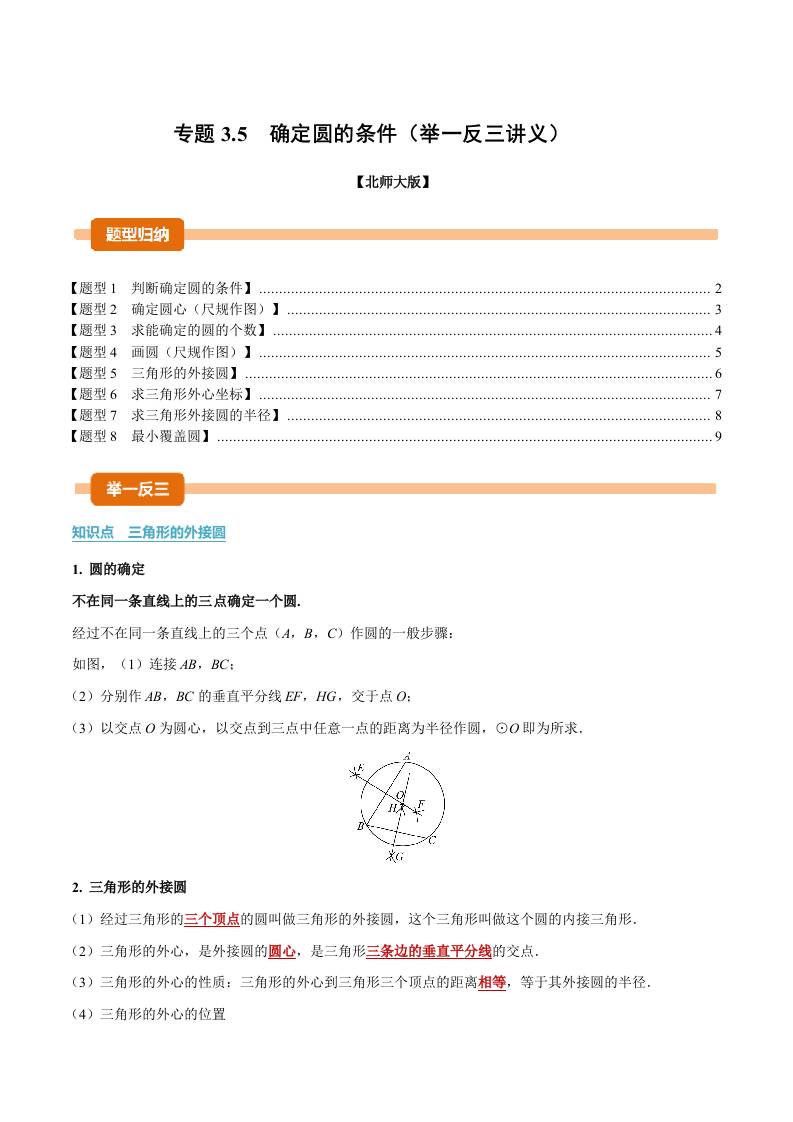 专题3.5 确定圆的条件(举一反三讲义)(解析版)