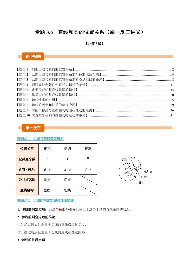 专题3.6 直线和圆的位置关系(举一反三讲义)(解析版)