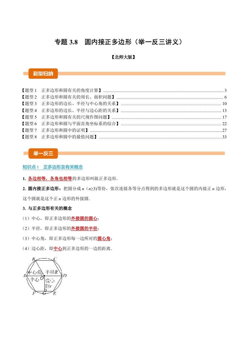 专题3.8 圆内接正多边形(举一反三讲义)(解析版)