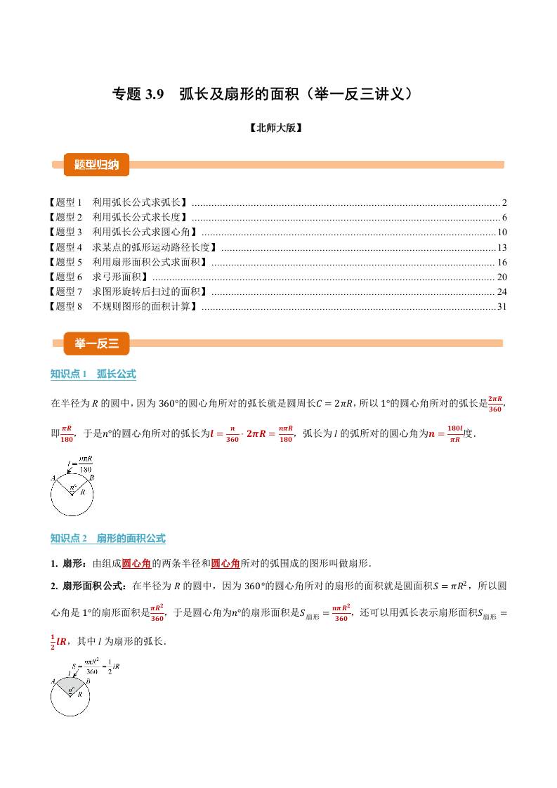 专题3.9 弧长及扇形的面积(举一反三讲义)(解析版)