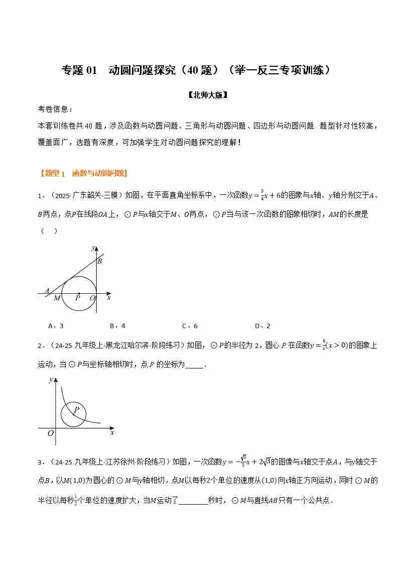 专题01 动圆问题探究(40题)(举一反三专项训练)(原卷版)