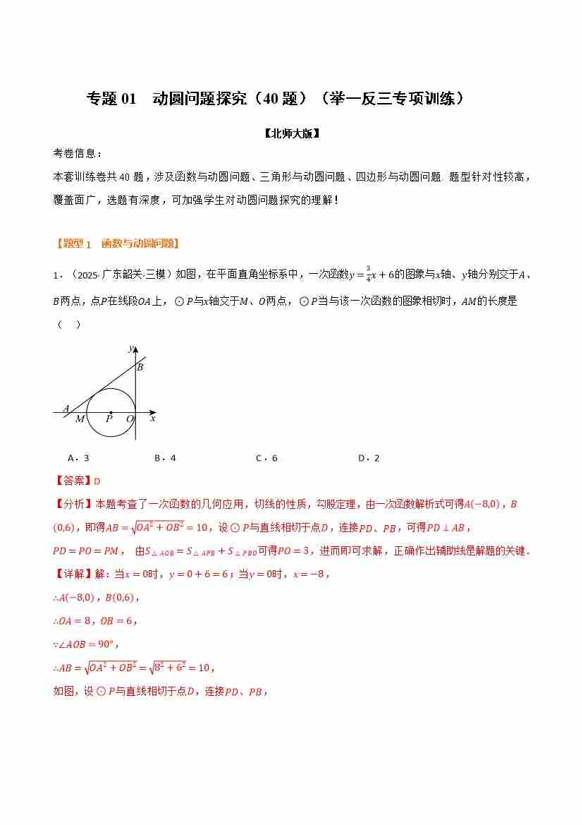 专题01 动圆问题探究(40题)(举一反三专项训练)(解析版)