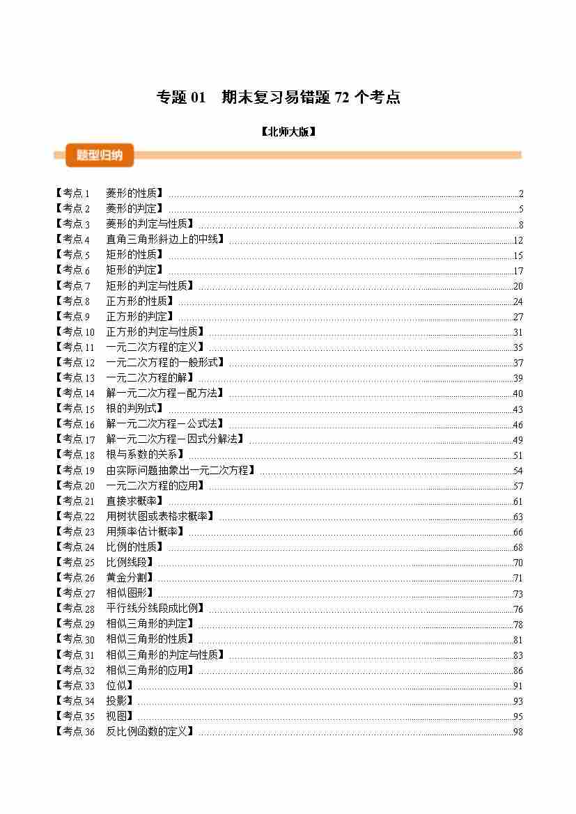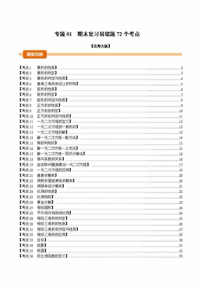 专题01 期末复习易错题72个考点(举一反三期末专项训练)(解析版)
