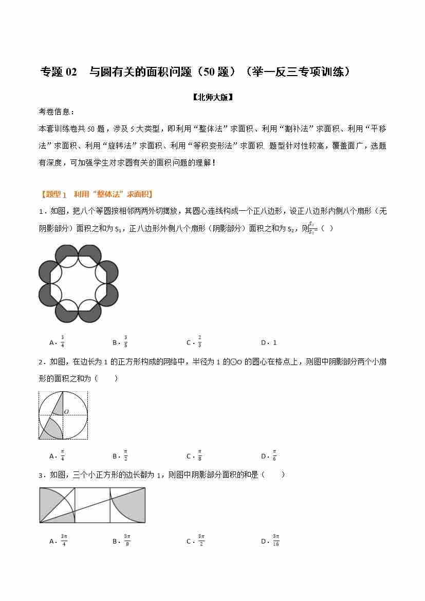 专题02 与圆有关的面积问题(50题)(举一反三专项训练)(原卷版)