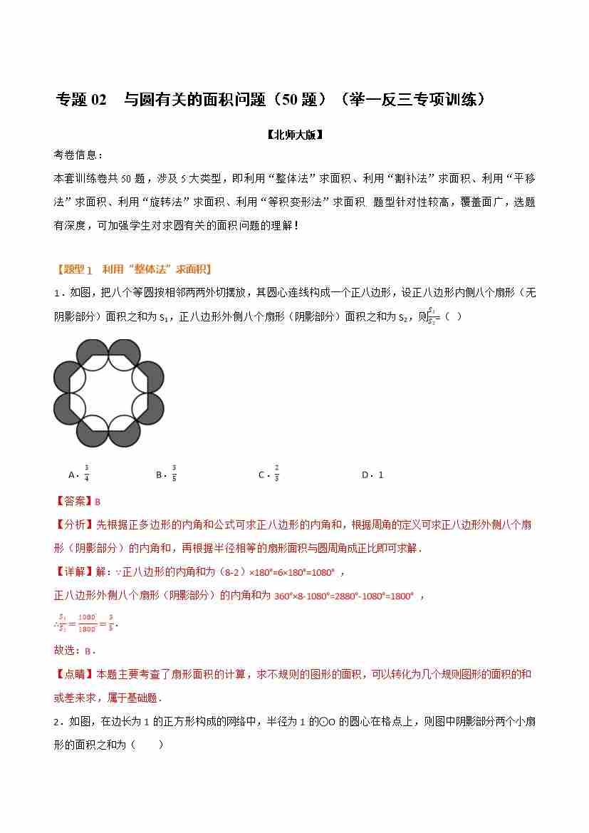 专题02 与圆有关的面积问题(50题)(举一反三专项训练)(解析版)