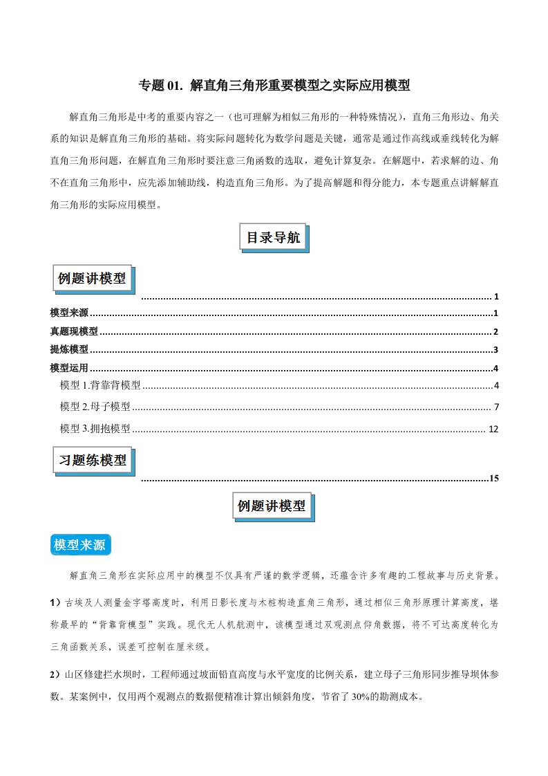 专题01 解直角三角形重要模型之实际应用模型(几何模型讲义)(学生版)