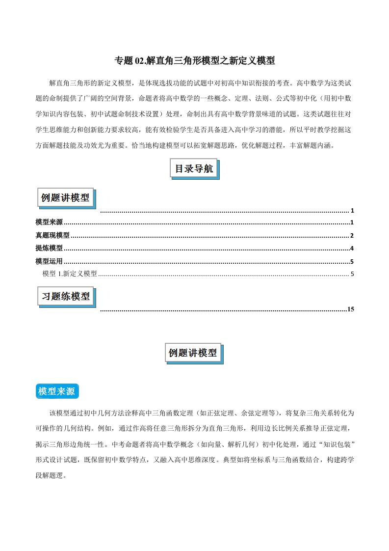 专题02 解直角三角形重要模型之新定义模型(几何模型讲义)(学生版)