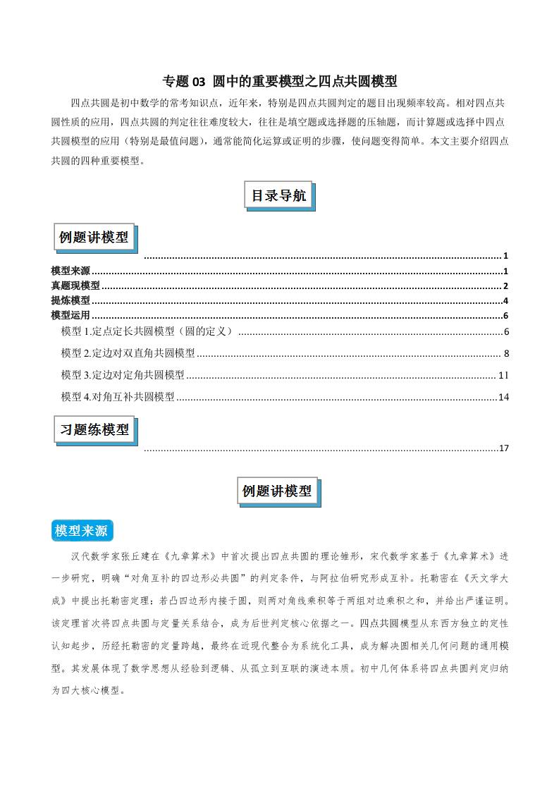 专题03 圆中的重要模型之四点共圆模型(几何模型讲义)(学生版)