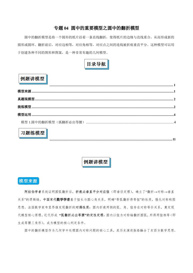 专题04 圆中的重要模型之圆中的翻折模型(几何模型讲义)(学生版)