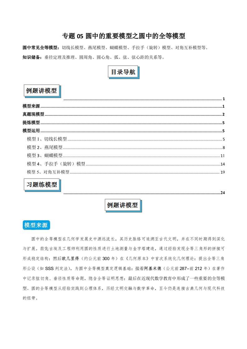 专题05 圆中的重要模型之圆中的全等模型(几何模型讲义)(学生版)