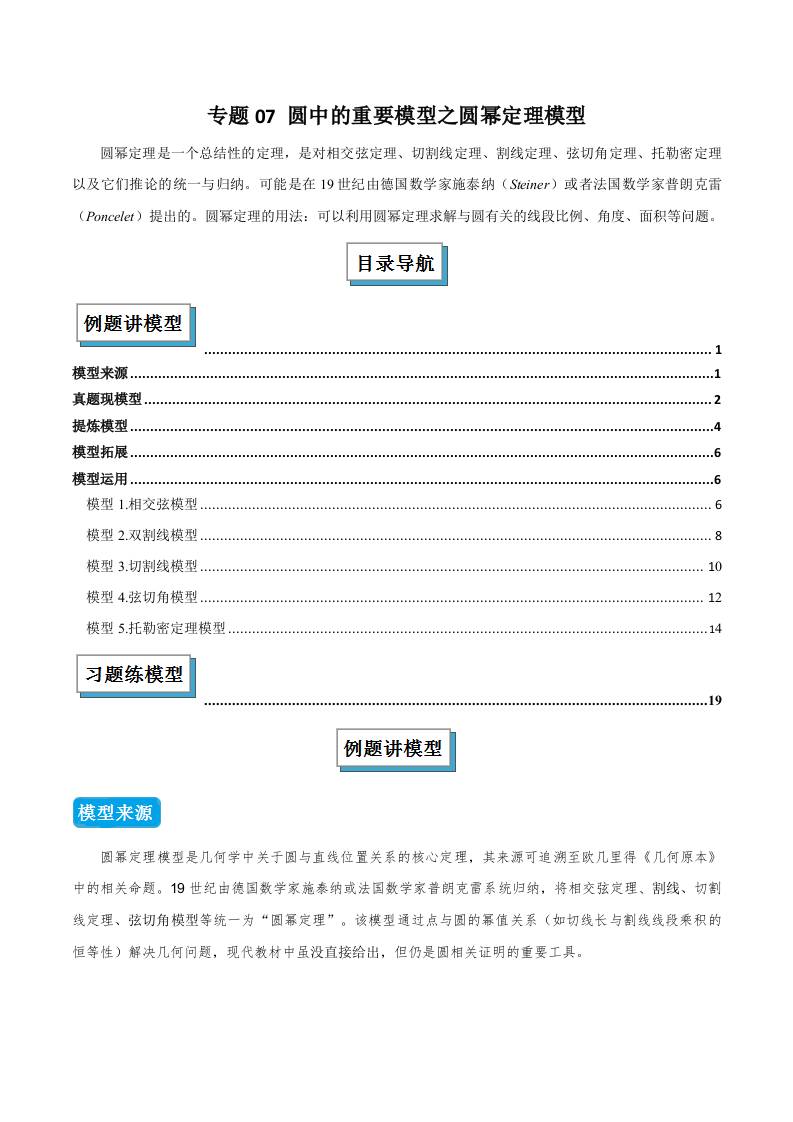 专题07 圆中的重要模型之圆幂定理模型(几何模型讲义)(原卷版)