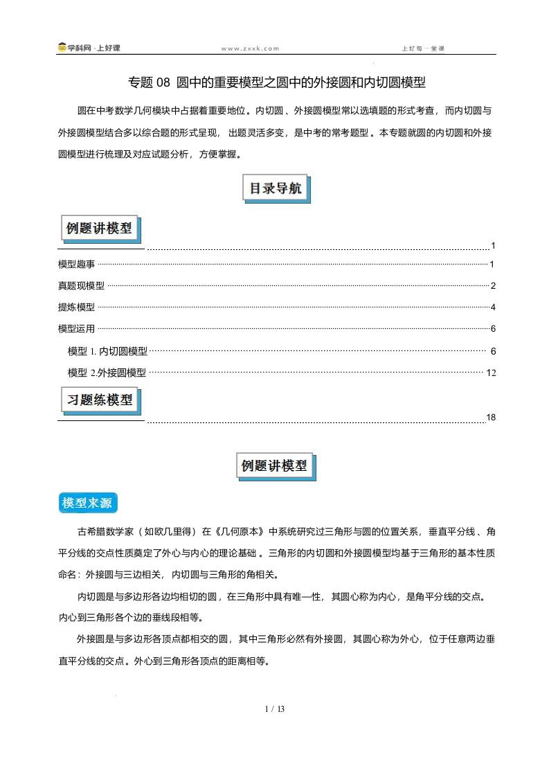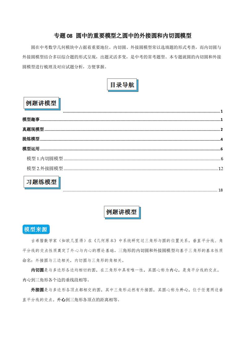 专题08 圆中的重要模型之圆中的外接圆和内切圆模型(几何模型讲义)