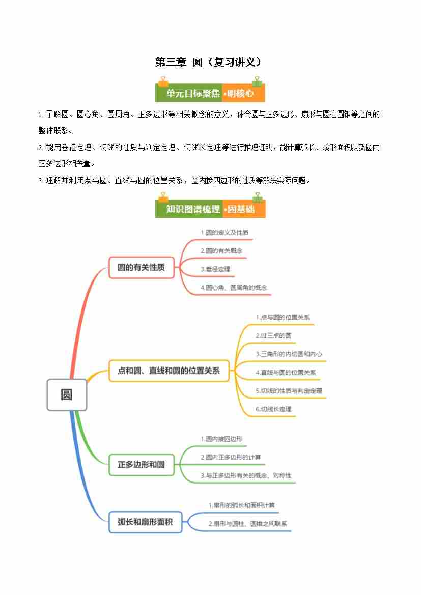 第三章 圆(必备知识14大题型分层训练)(复习讲义)(原卷版)