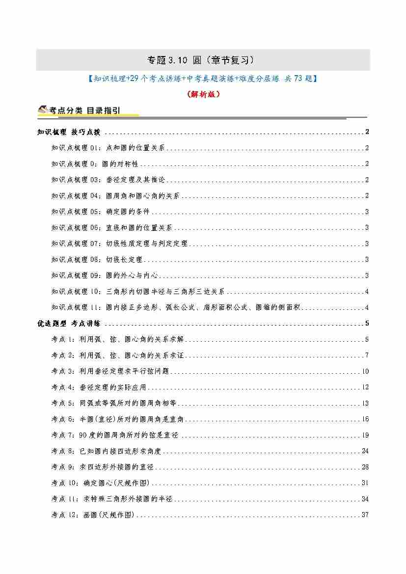 专题3.10 圆(章节复习)(知识梳理+29个考点讲练中考真题演练难度分层练 共73题)原卷版
