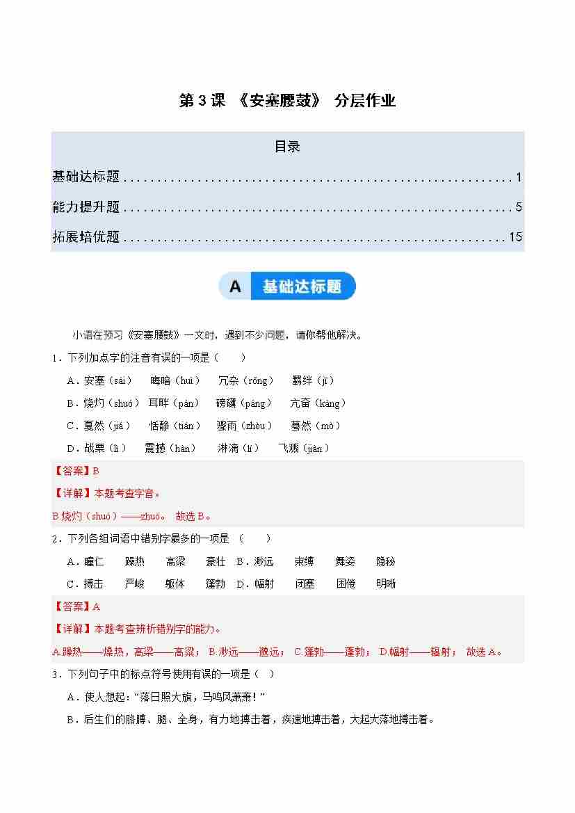 03 安塞腰鼓(素养进阶分层作业)(解析版)