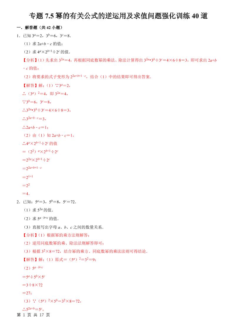 专题7.5幂的有关公式的逆运用及求值问题强化训练40道(解析版)