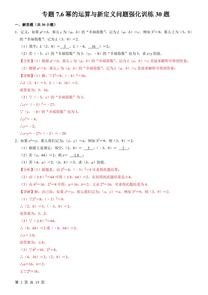 专题7.6幂的运算与新定义问题强化训练30题(解析版)