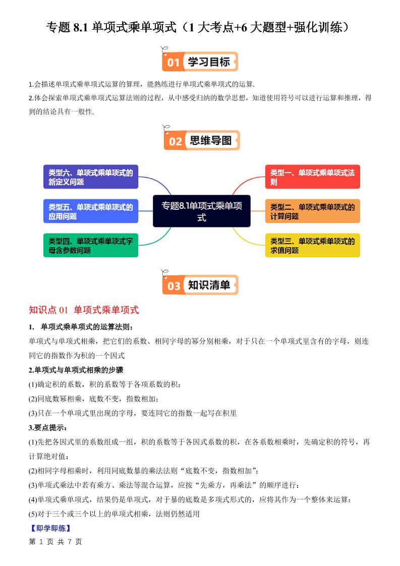 专题8.1单项式乘单项式(1大考点、6大题型、强化训练)(解析版)