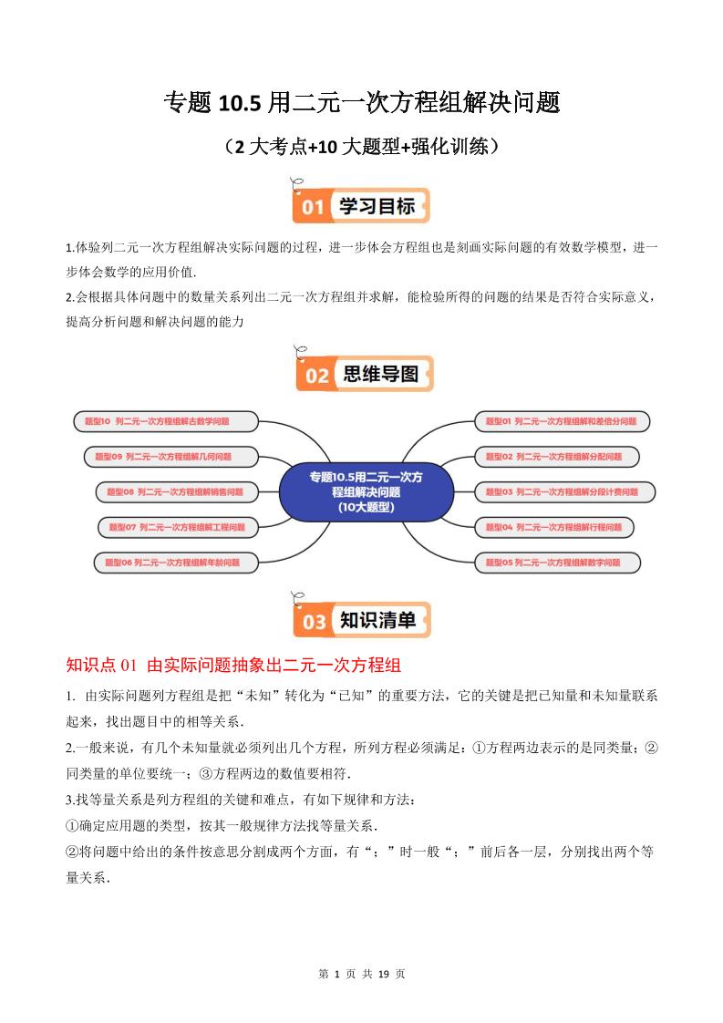 专题10.5用二元一次方程组解决问题(2大考点、10大题型、强化训练)(原卷版)