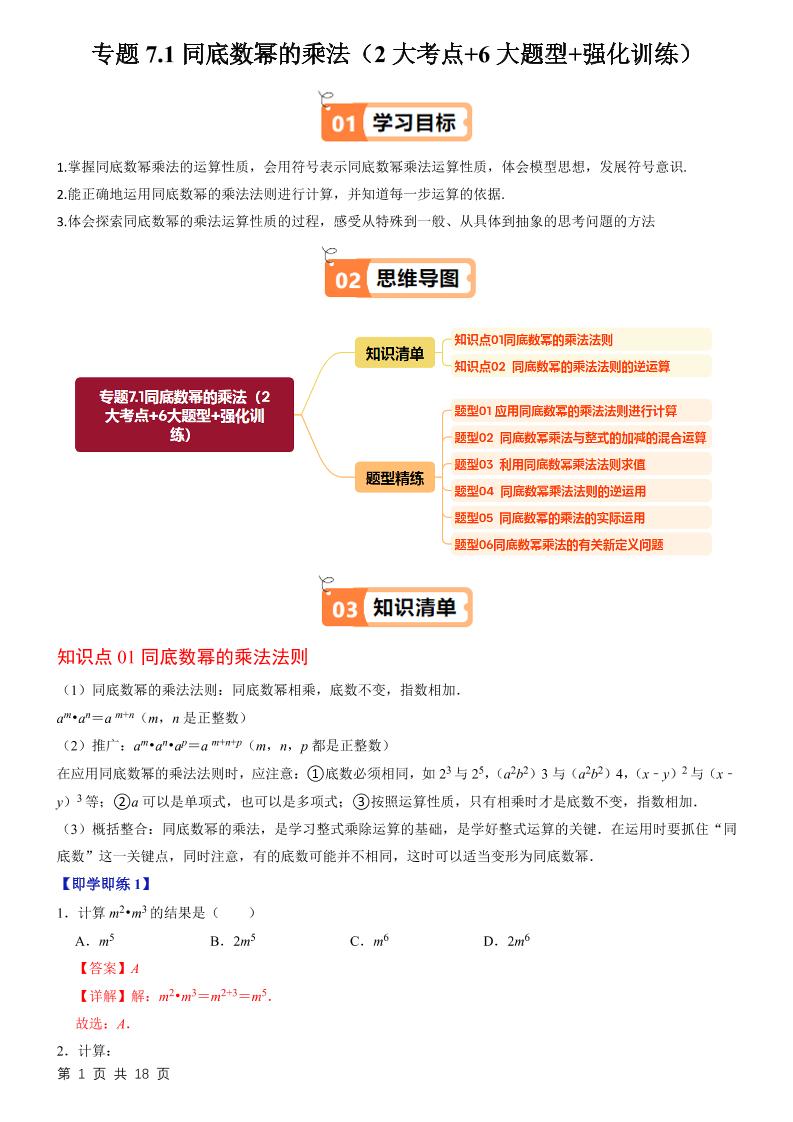 专题7.1同底数幂的乘法(2大考点、6大题型、强化训练)(解析版)
