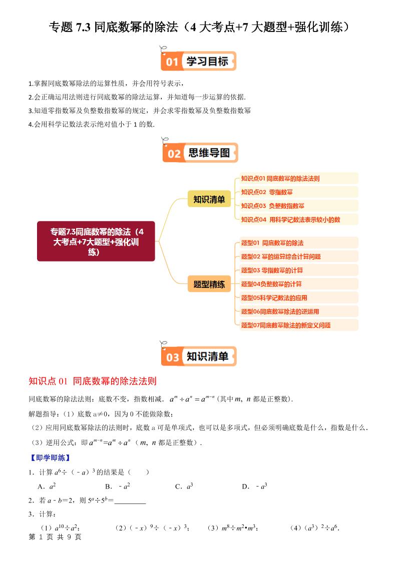 专题7.3同底数幂的除法(4大考点、7大题型、强化训练)(解析版)