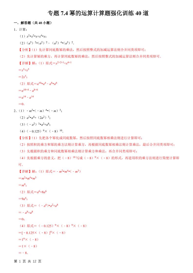 专题7.4幂的运算计算题强化训练40道(解析版)