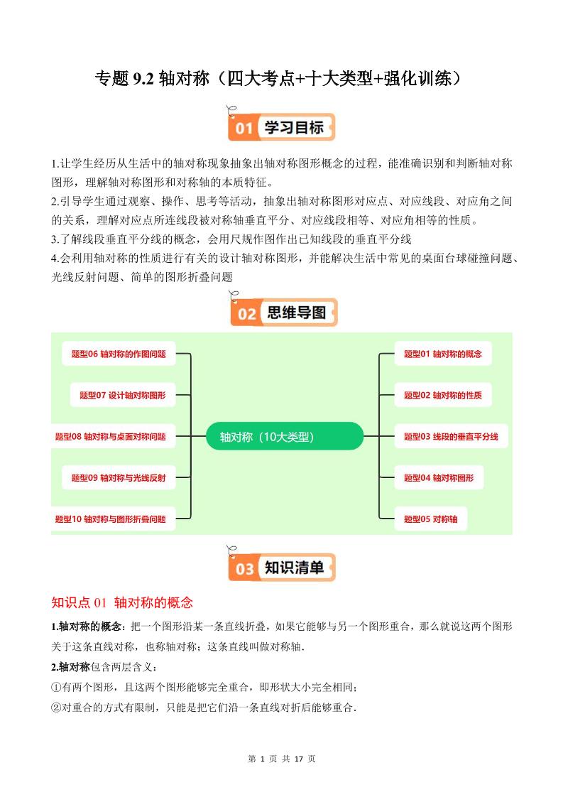 专题9.2轴对称(四大考点、十大类型、强化训练)(原卷版)