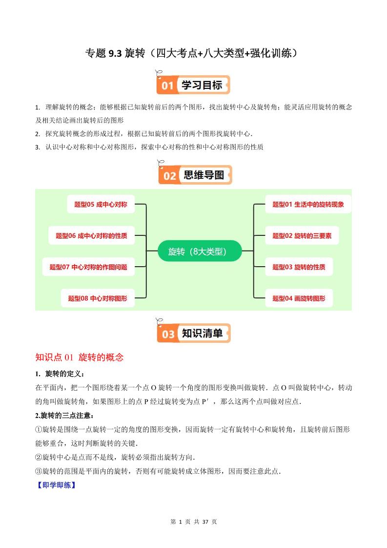 专题9.3旋转(四大考点、十大类型、强化训练)(解析版)