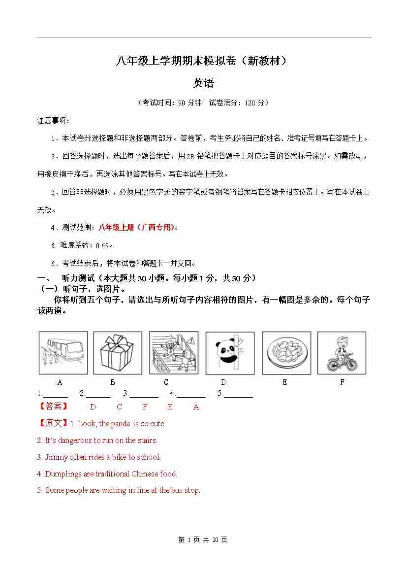 八年级英语期末模拟卷 (解析)( 兰州专用 新教材人教版)