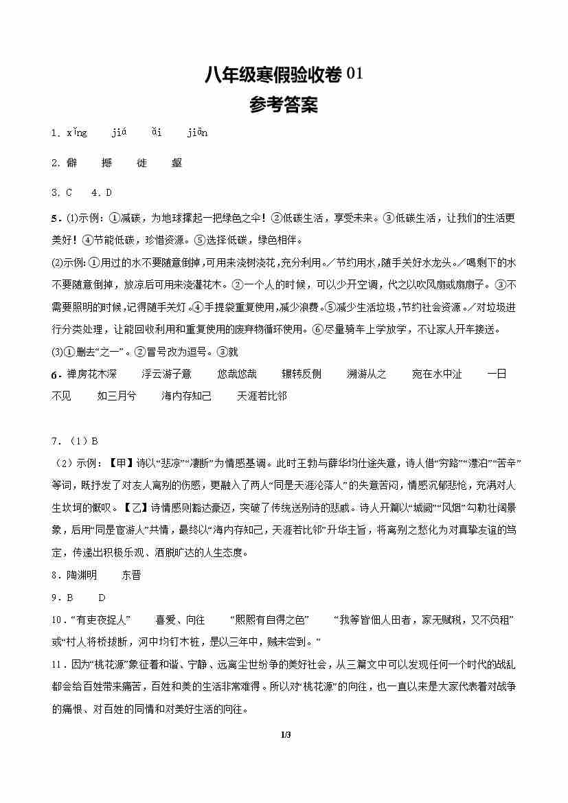 2026年寒假验收卷01(范围:统编版八年级下册)(参考答案)