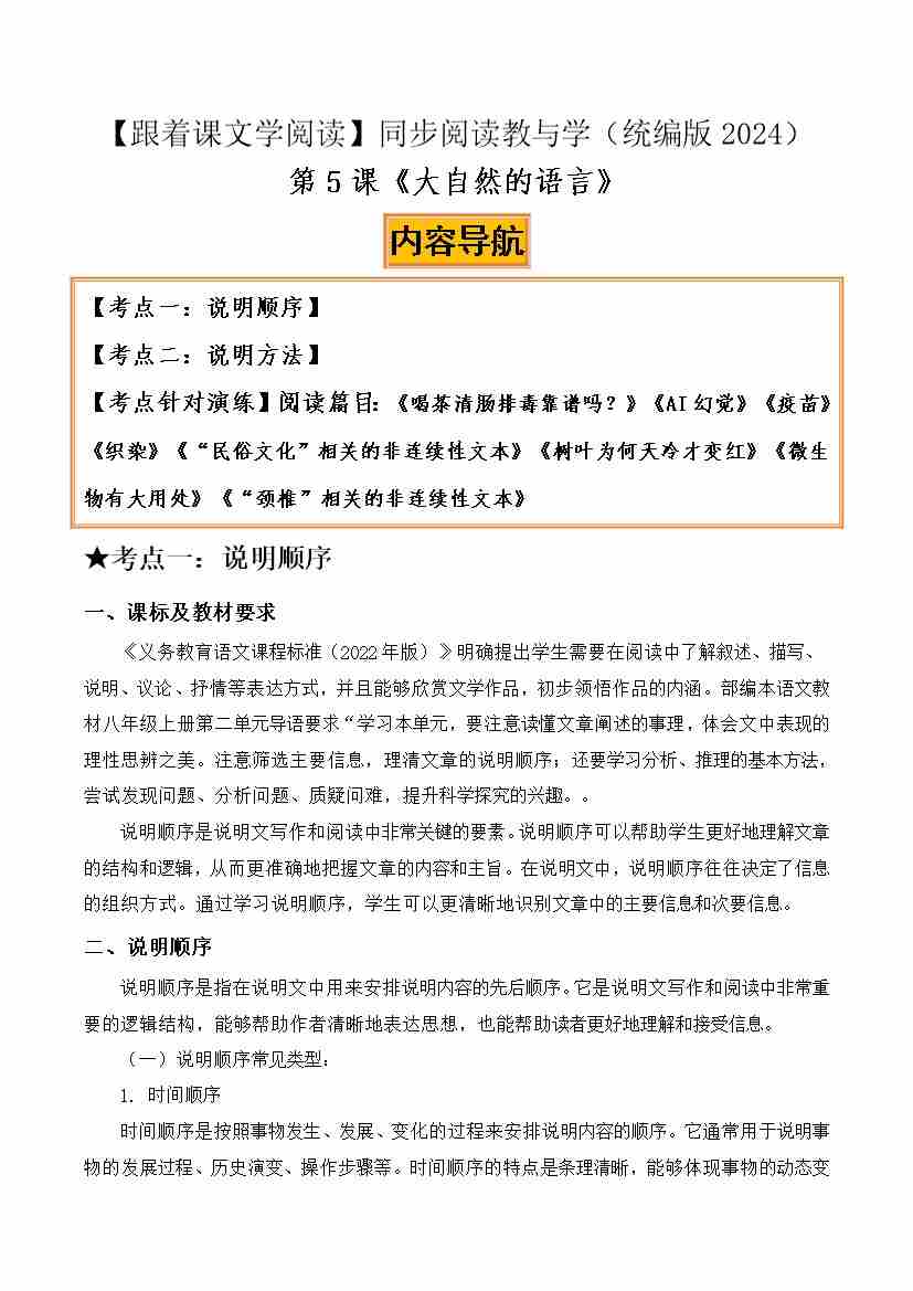 竺可桢《大自然的语言》:说明顺序、说明方法(解析版)