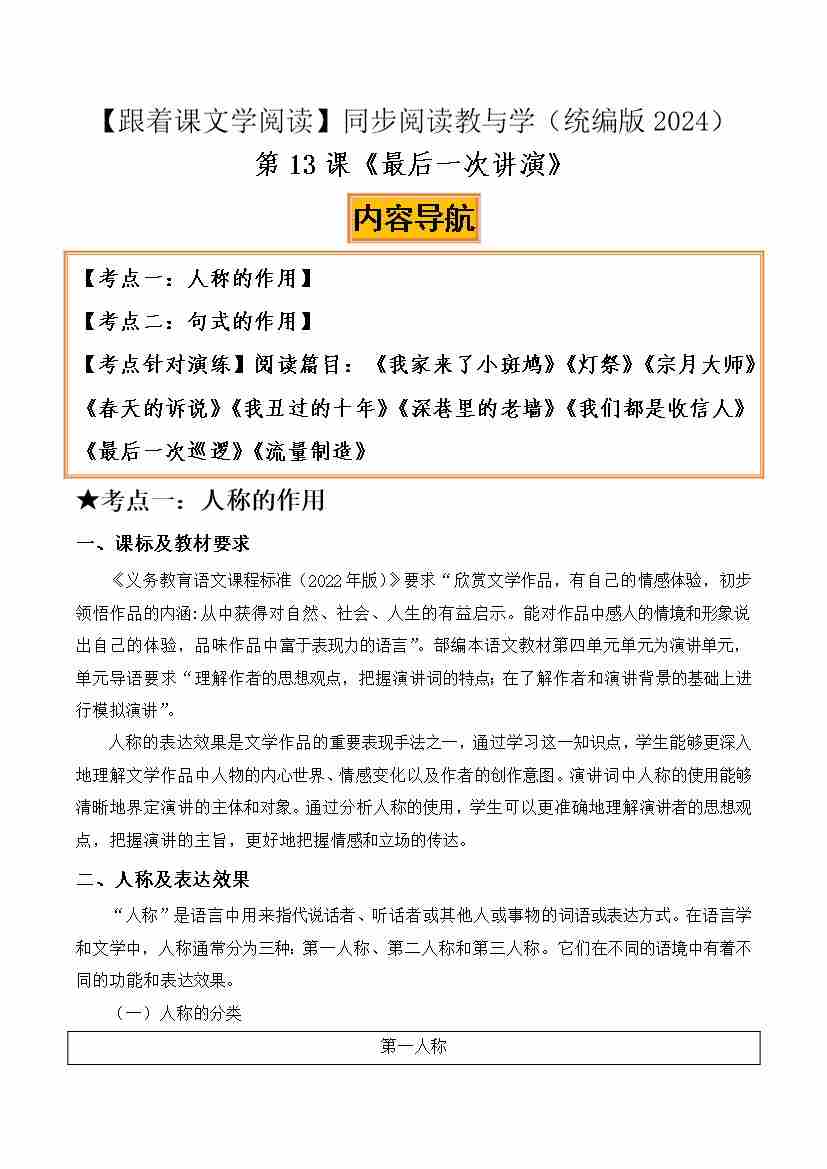 闻一多《最后一次讲演》:人称的作用、句式的作用(解析版)
