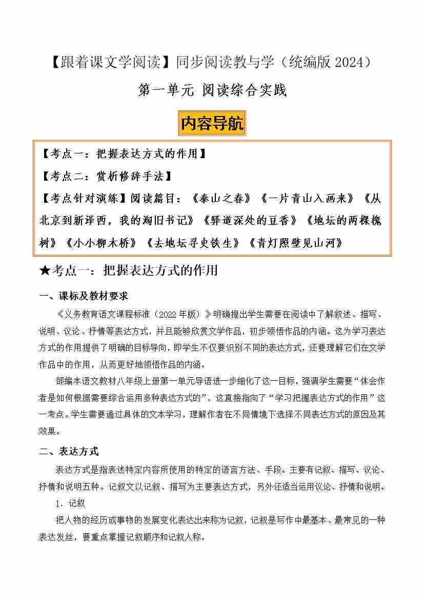 阅读综合实践:把握表达方式的作用,赏析修辞手法(原卷版)