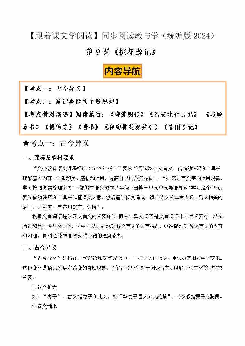 陶渊明《桃花源记》:古今异义、游记类散文主题思想(解析版)