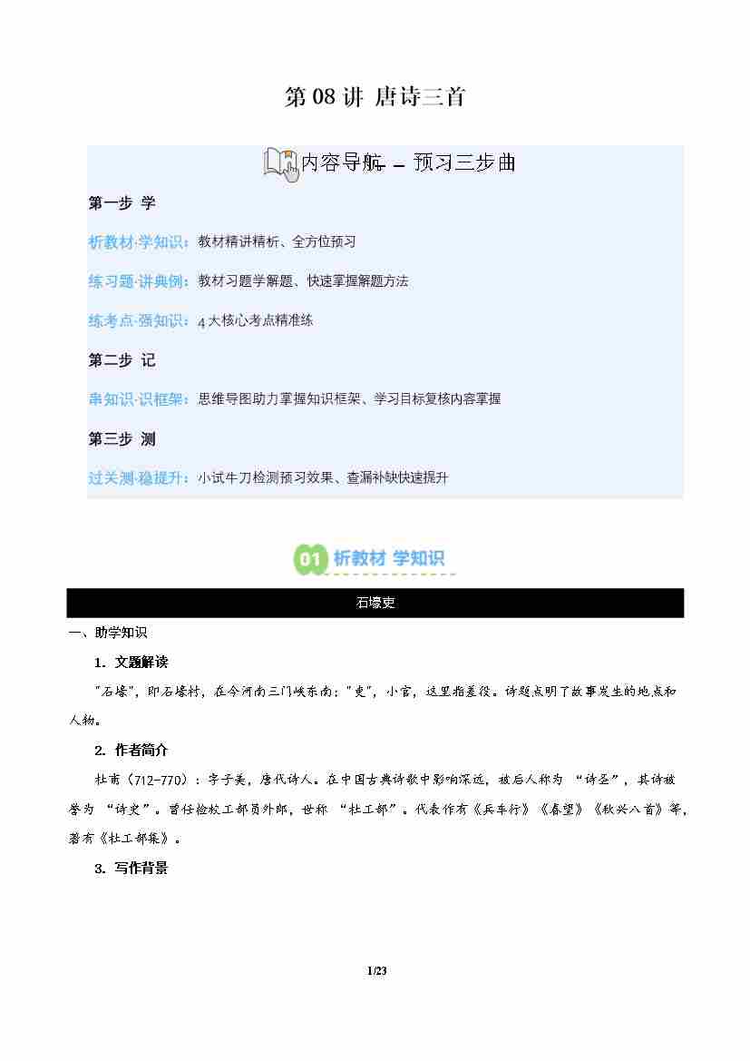 ②寒假预习-第08讲 《唐诗三首》(寒假预习讲义)(学生版)-2026学年八年级语文寒假衔接讲练(统编版-新教材)