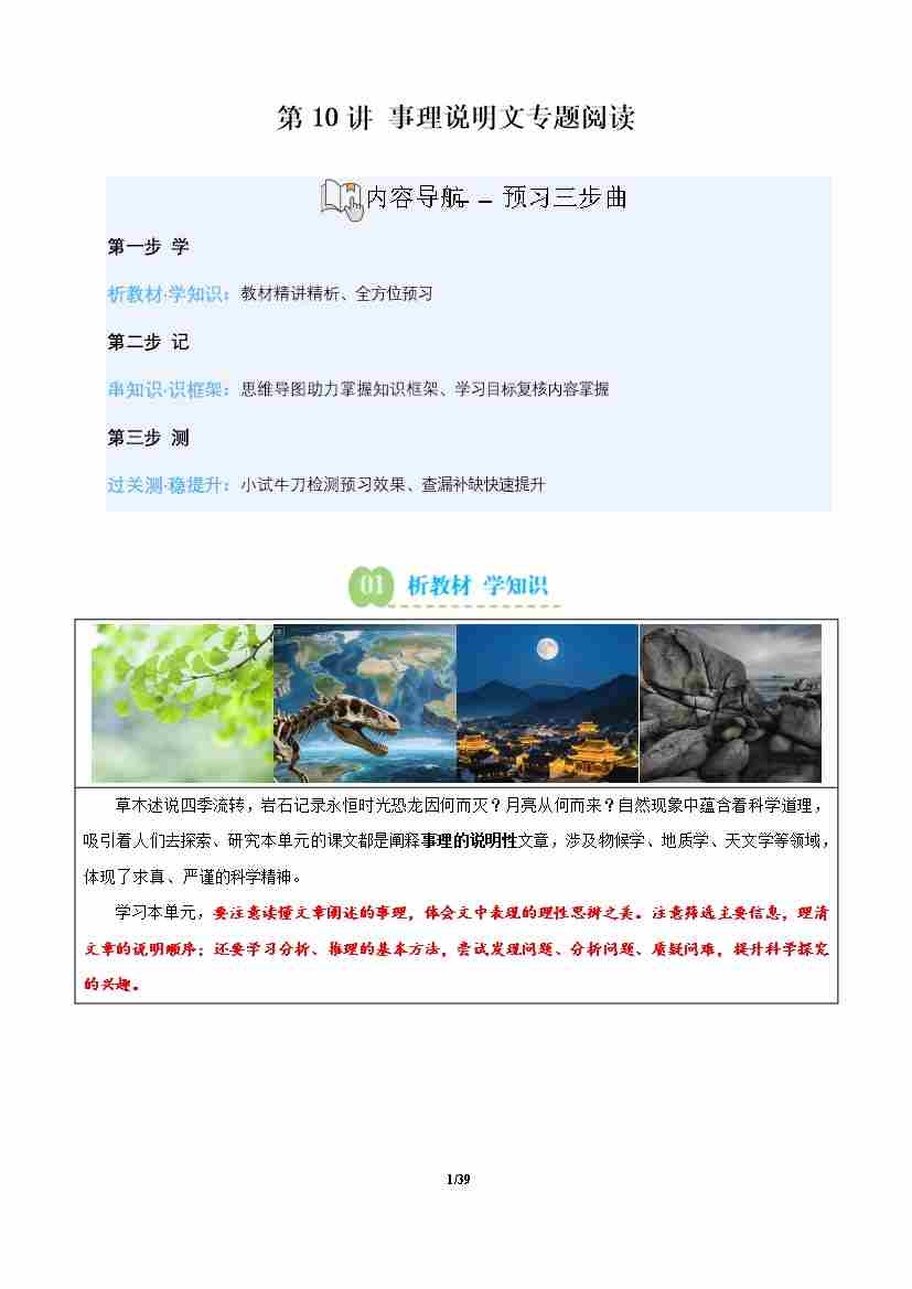 ②寒假预习-第10讲 事理说明文专题阅读(寒假预习讲义)(教师版)-2026学年八年级语文寒假衔接讲练(统编版-新教材)