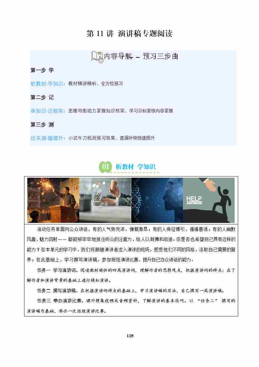 ②寒假预习-第11讲 演讲稿专题阅读(寒假预习讲义)(学生版)-2026学年八年级语文寒假衔接讲练(统编版-新教材)