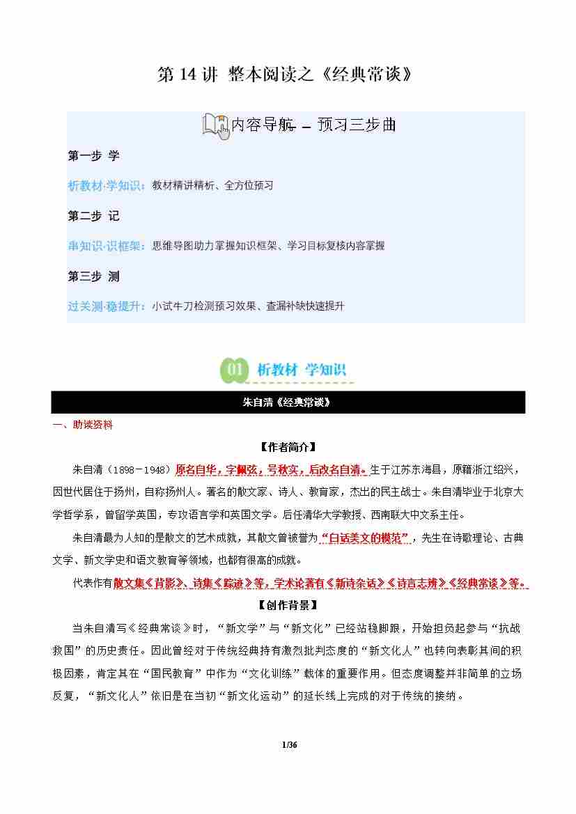②寒假预习-第14讲 整本阅读之《经典常谈》(寒假预习讲义)(教师版)-2026学年八年级语文寒假衔接讲练(统编版-新教材)