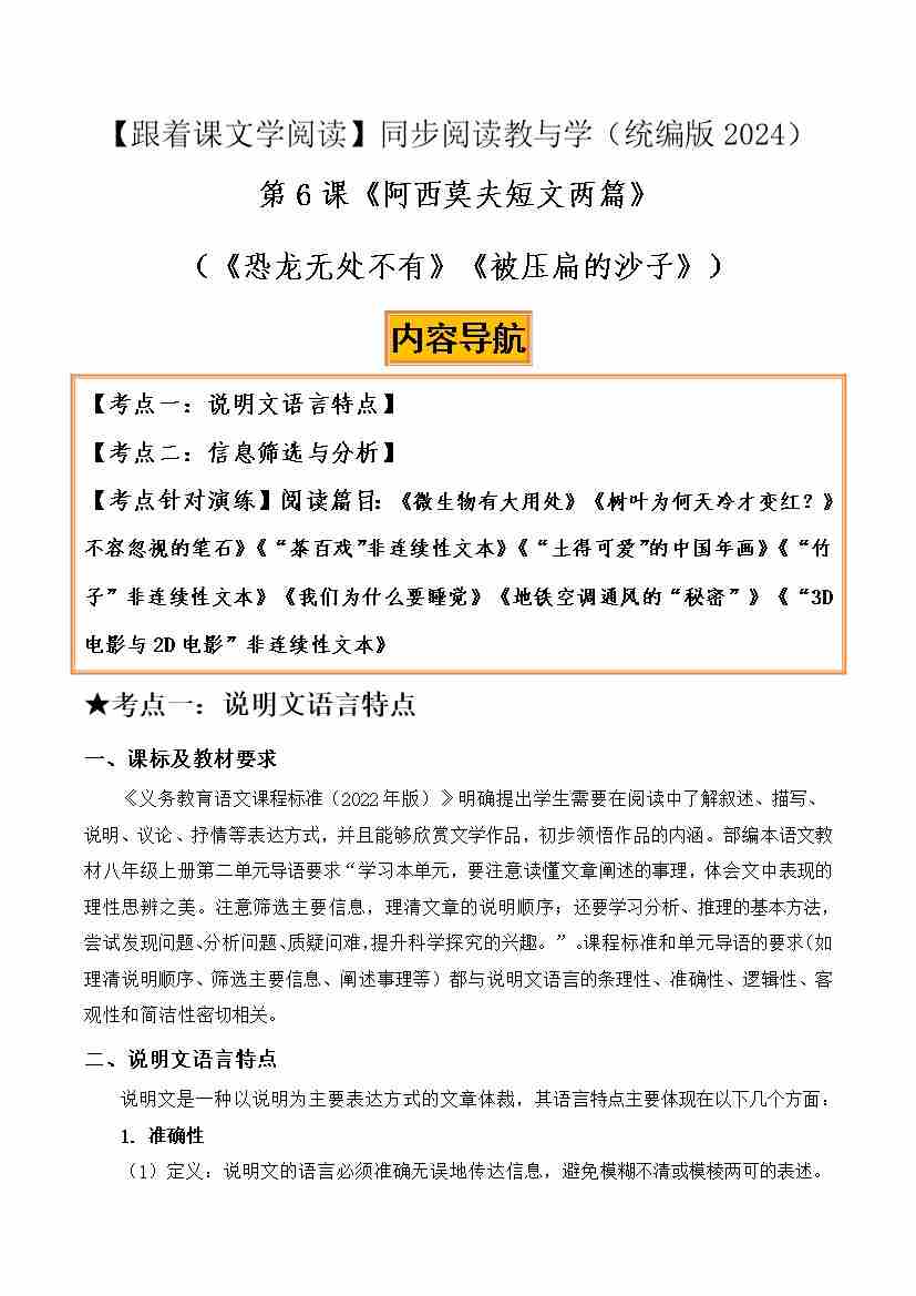 《阿西莫夫短文两篇》:说明文语言特点、信息筛选(解析版)