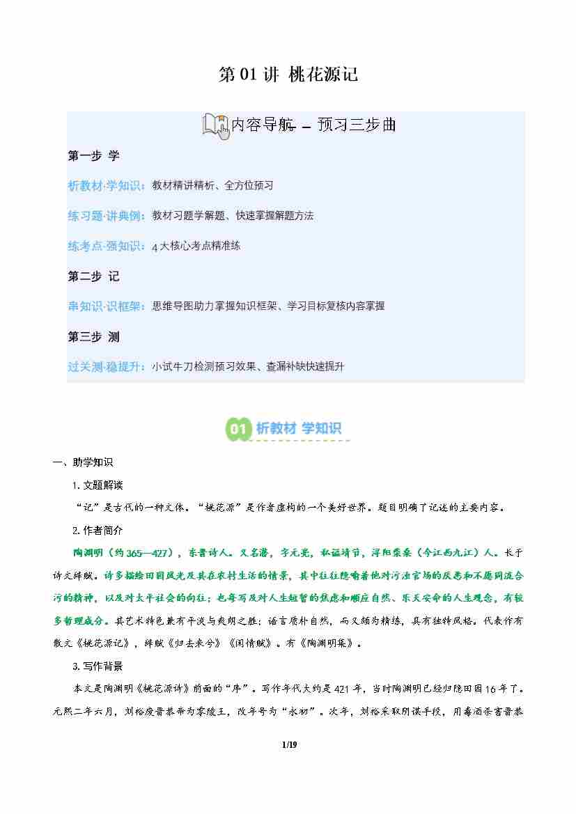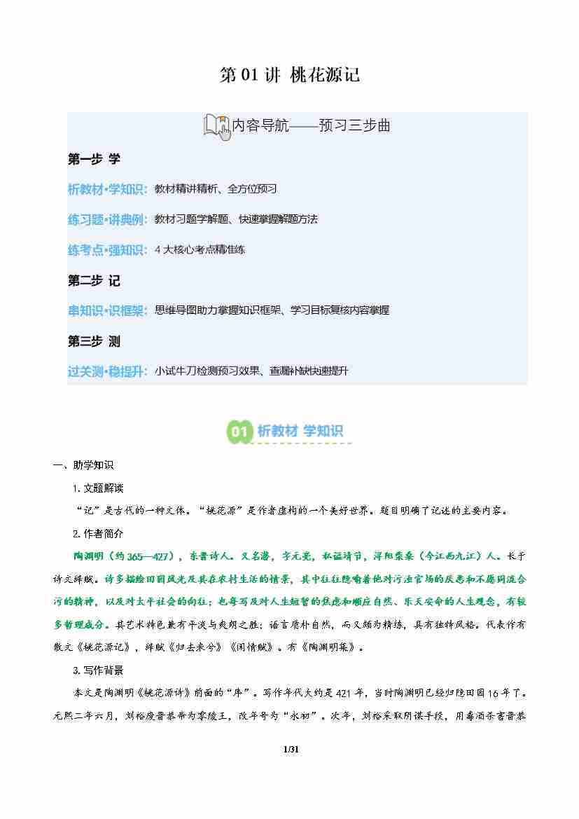 ②寒假预习-第01讲 《桃花源记》(寒假预习讲义)(教师版)-2026学年八年级语文寒假衔接讲练(统编版-新教材)