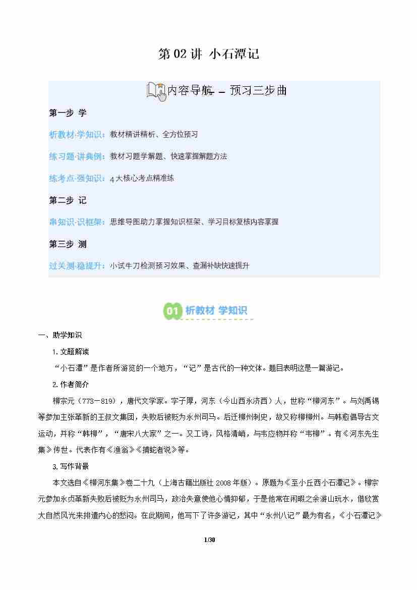 ②寒假预习-第02讲 《小石潭记》(寒假预习讲义)(学生版)-2026学年八年级语文寒假衔接讲练(统编版-新教材)