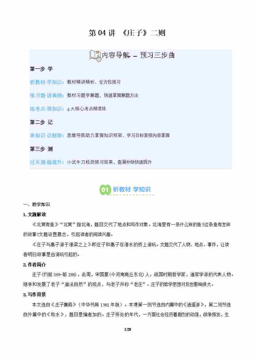 ②寒假预习-第04讲 《庄子》二则(寒假预习讲义)(学生版)-2026学年八年级语文寒假衔接讲练(统编版-新教材)