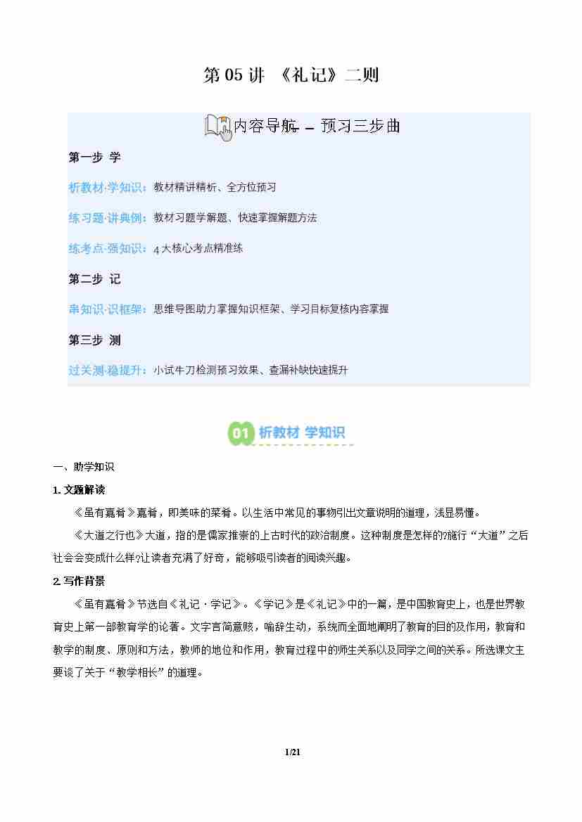 ②寒假预习-第05讲 《礼记》二则(寒假预习讲义)(学生版)-2026学年八年级语文寒假衔接讲练(统编版-新教材)