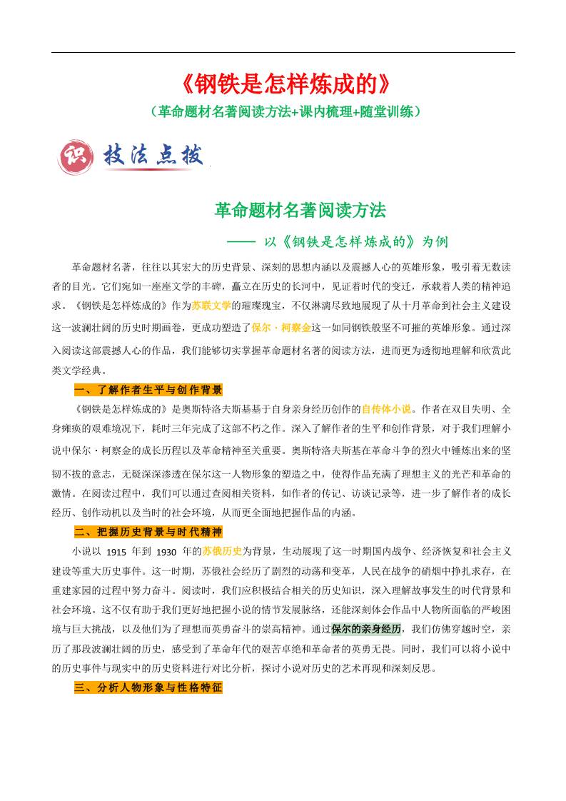 《钢铁是怎样炼成的》(革命题材名著阅读方法课内梳理随堂训练)解析版