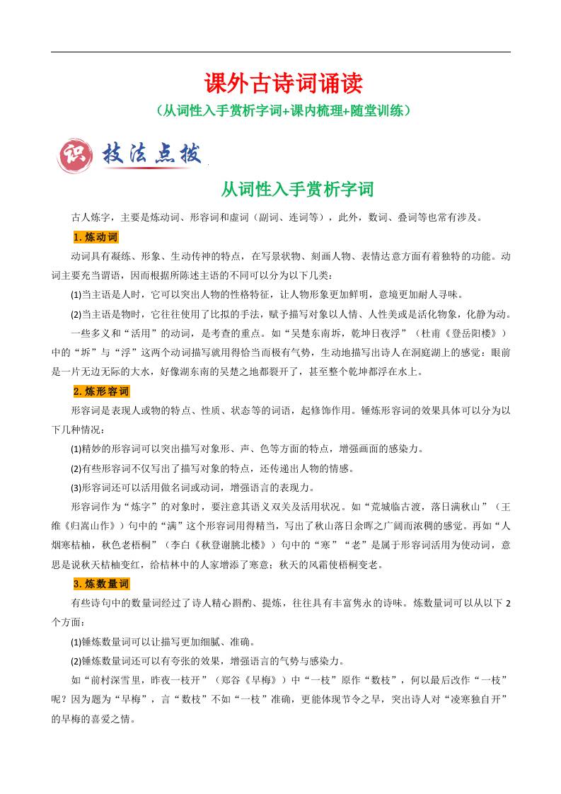 课外古诗词诵读(从词性入手赏析字词课内梳理随堂训练)原卷版
